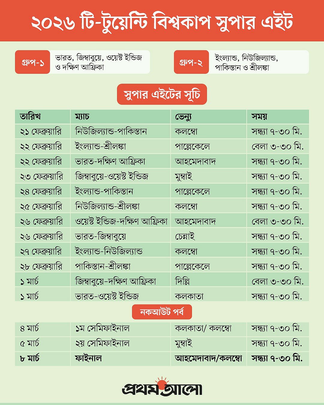 সুপার এইটের সূচি