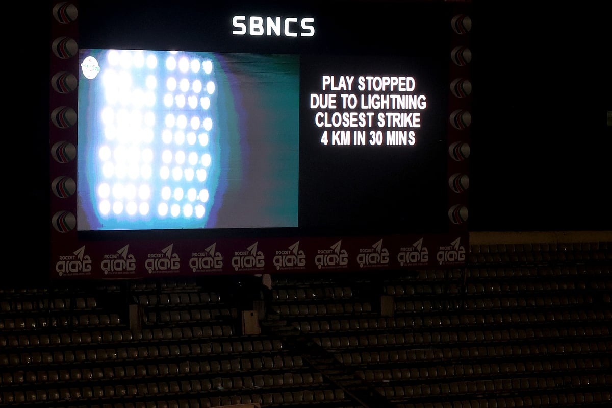 মিরপুর থেকে প্রথম আলোর ক্রীড়া সম্পাদক তারেক মাহমুদ জানিয়েছেন, বৃষ্টি এখন থেমেছে। তবে উইকেট কাভারে ঢাকা। বিজলিজনিত দুর্ঘটনা এড়াতে ফ্লাড লাইট জ্বলছে শুধু একটি টাওয়ারে।
