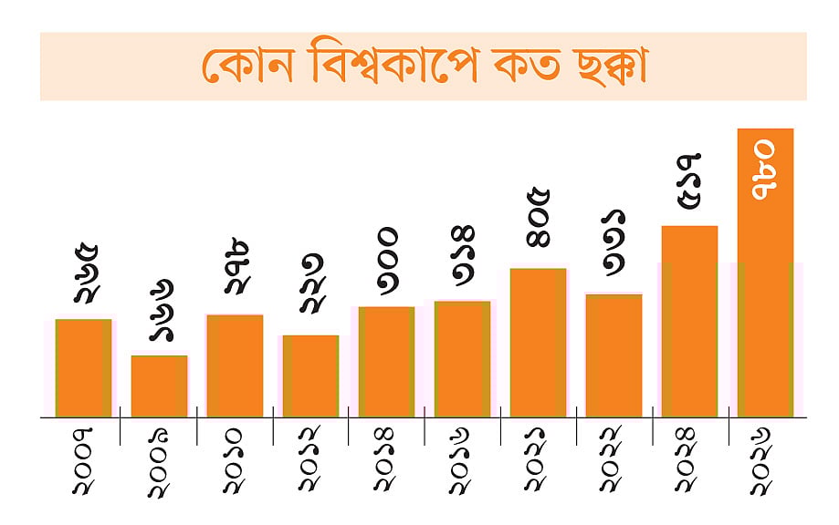 • এই বিশ্বকাপে ৭৮০টি ছক্কাও নতুন রেকর্ড। আগের রেকর্ডের চেয়ে যা ২৬৩ বেশি।