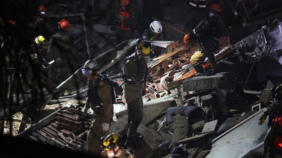 ইরানের ক্ষেপণাস্ত্র হামলায় ইসরায়েলের হাইফা শহরের একটি ভবন ধসে পড়ার পর সেখানে আটকা পড়া মানুষদের উদ্ধারে কাজ করছে উদ্ধারকারী দল।