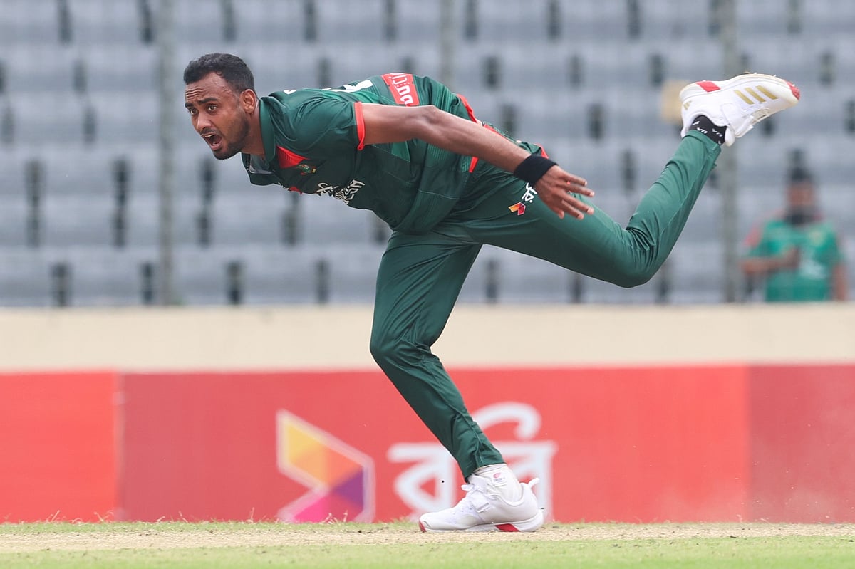 শেষ ওভারে দুটি ওয়াইড ও একটি ‘নো বল’সহ মোট ১০ রান দিয়েছেন তাসকিন।