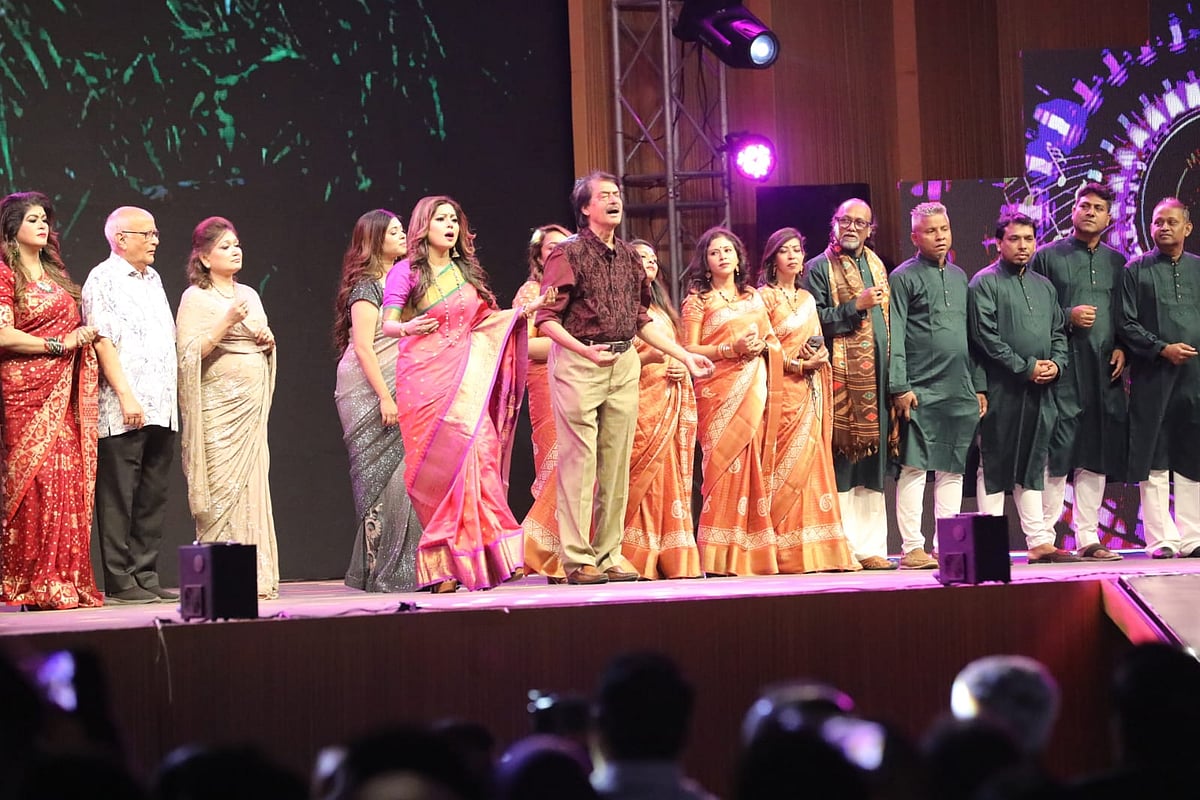মঙ্গলবার সন্ধ্যা সাতটার দিকে সমবেত সংগীতের মধ্য দিয়ে পর্দা ওঠে অনুষ্ঠানের। প্রবীণ ও নবীন শিল্পীদের কণ্ঠে পরিবেশিত ‘ধনধান্য পুষ্পে ভরা’ ও ‘প্রথম বাংলাদেশ আমার শেষ বাংলাদেশ’ শুরুতেই তৈরি করে আবেগঘন পরিবেশ।